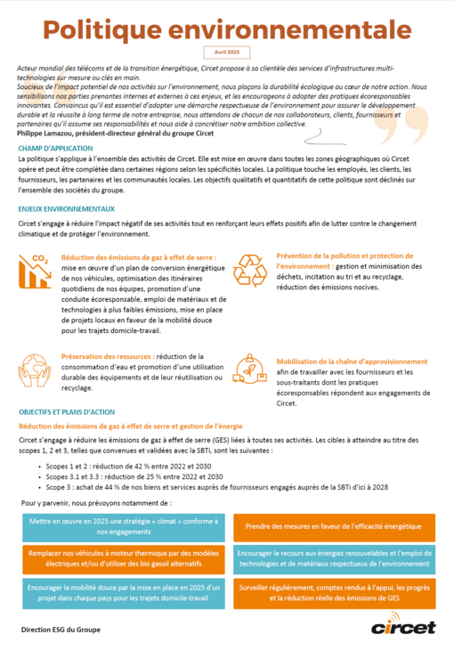 Le groupe Circet et l'ensemble de ses filiales à travers le monde s'engagent à veiller au respect absolu de l'éthique et de l'intégrité dans toutes leurs activités. Au travers de notre code de conduite anti-corruption, disponible dans toutes les langues du Groupe (hormis le roumain), nous veillons à ce que ces principes soient appliqués en toutes circonstances, afin de garantir la transparence et la confiance dans nos relations professionnelles et commerciales.